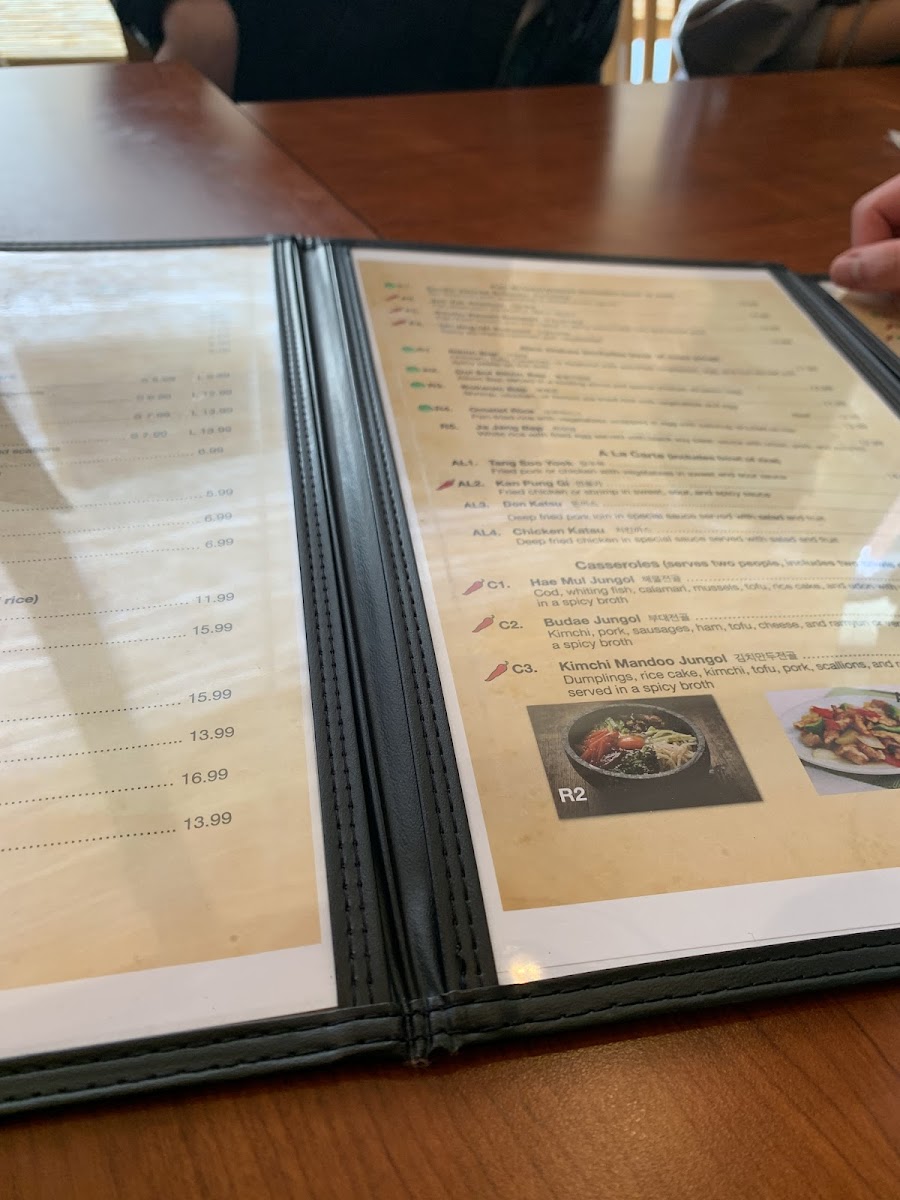 Spicy. Vegetarian. Spicy soft tofu soup with seafood, chicken, beef, or pork.